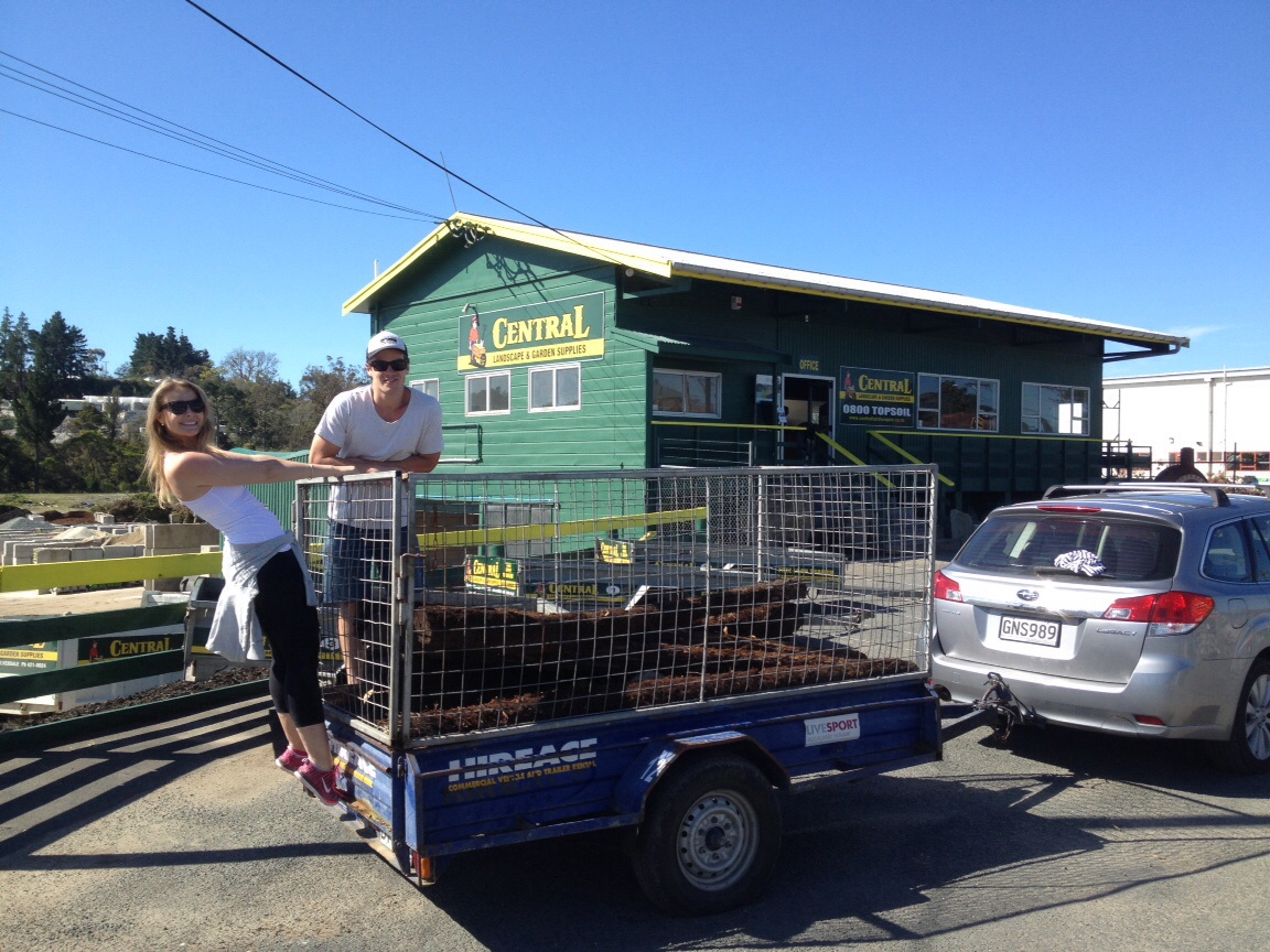 What a stunning day it was today – feels like summer is finally here – perfect weather for doing some more work on the section. We’d run out of supplies so headed up the motorway and grabbed another load of rocks and pungas from Central Landscape And Garden Supplies in Silverdale. We can’t recommend this place more highly. Dean and the guys up there are awesome and they stock pretty much anything you’d ever need for your garden, lawn and yards. Or streams!