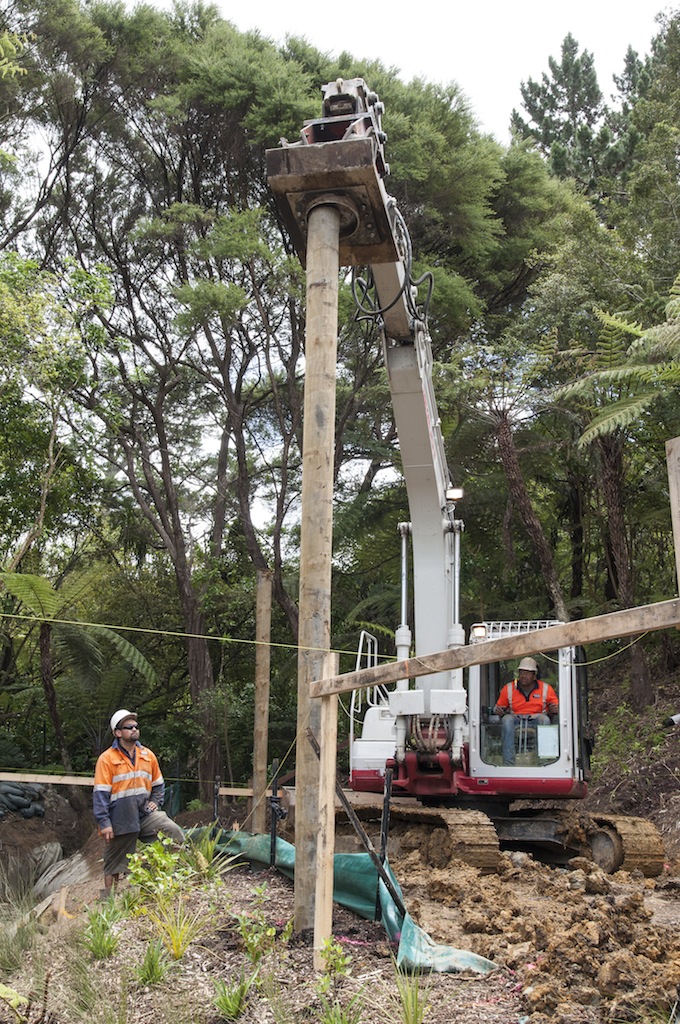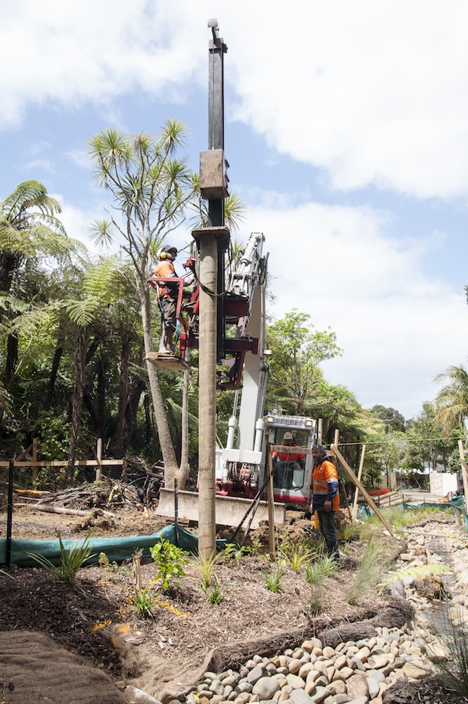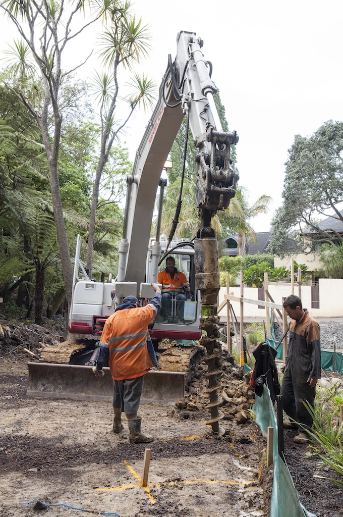 There was a lot of thumping done all over the section with 50 odd piles required to hold up our house, retaining walls and driveway.