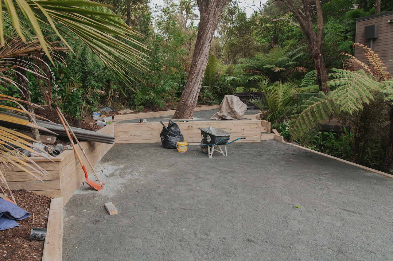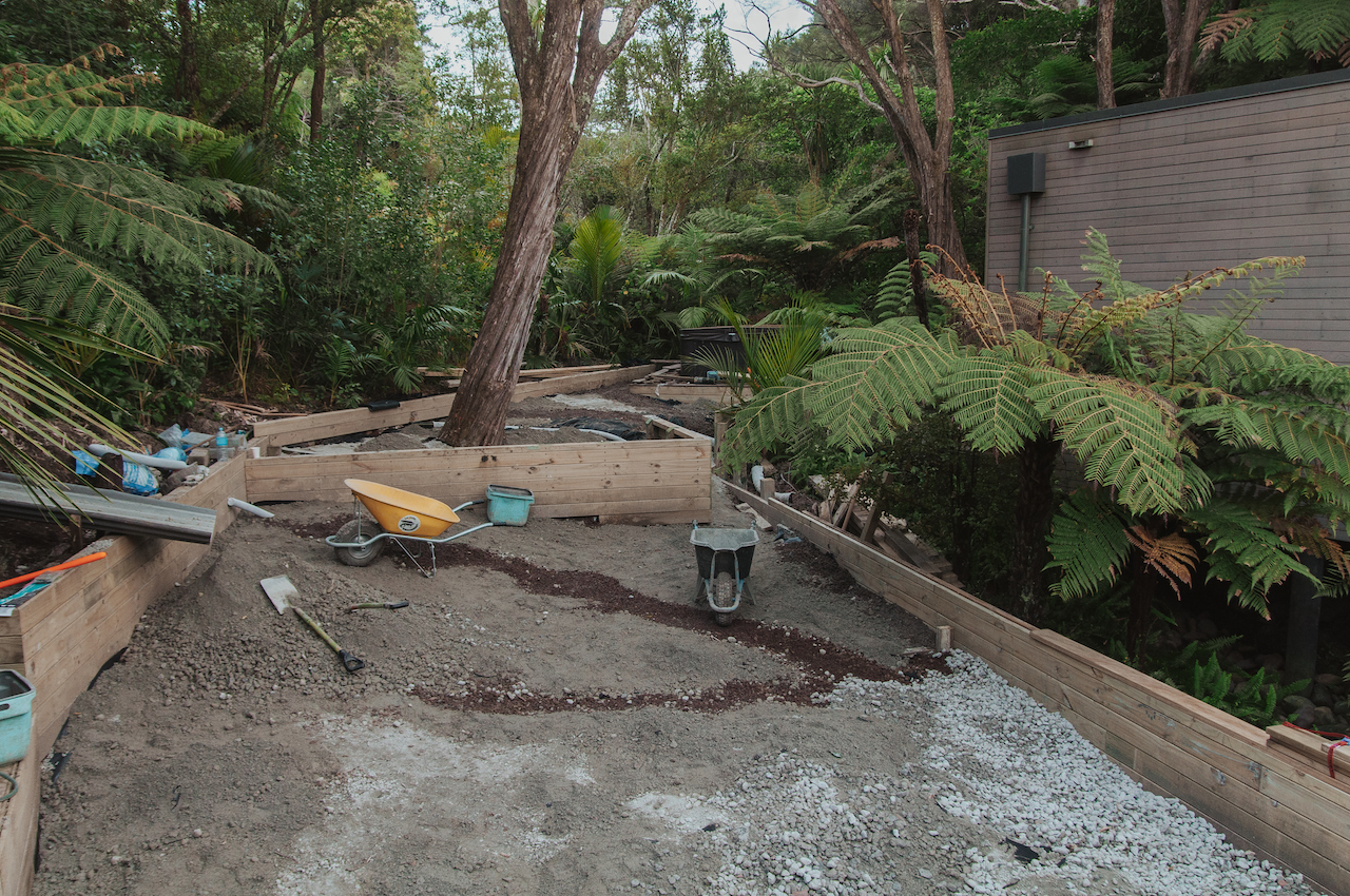 With plenty of trees and lots of moisture, it’s always been a hard place to grow anything – in the winter it’s pretty wet and in summer it gets so dry the ground cracks. Ever since we found our section we’ve always had the philosophy that we wanted to work with the land and not fight it so we set out to renovate our backyard with the same mindset.