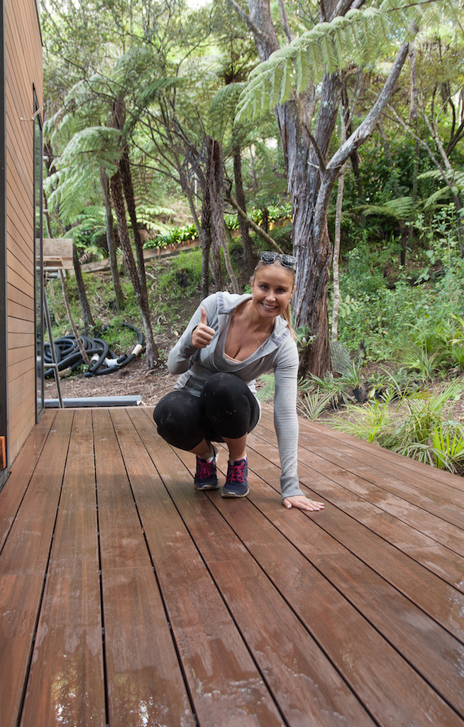 Kylie’s pretty happy with the finished deck, especially how well it ties in with the cedar cladding and blends in with the bush.