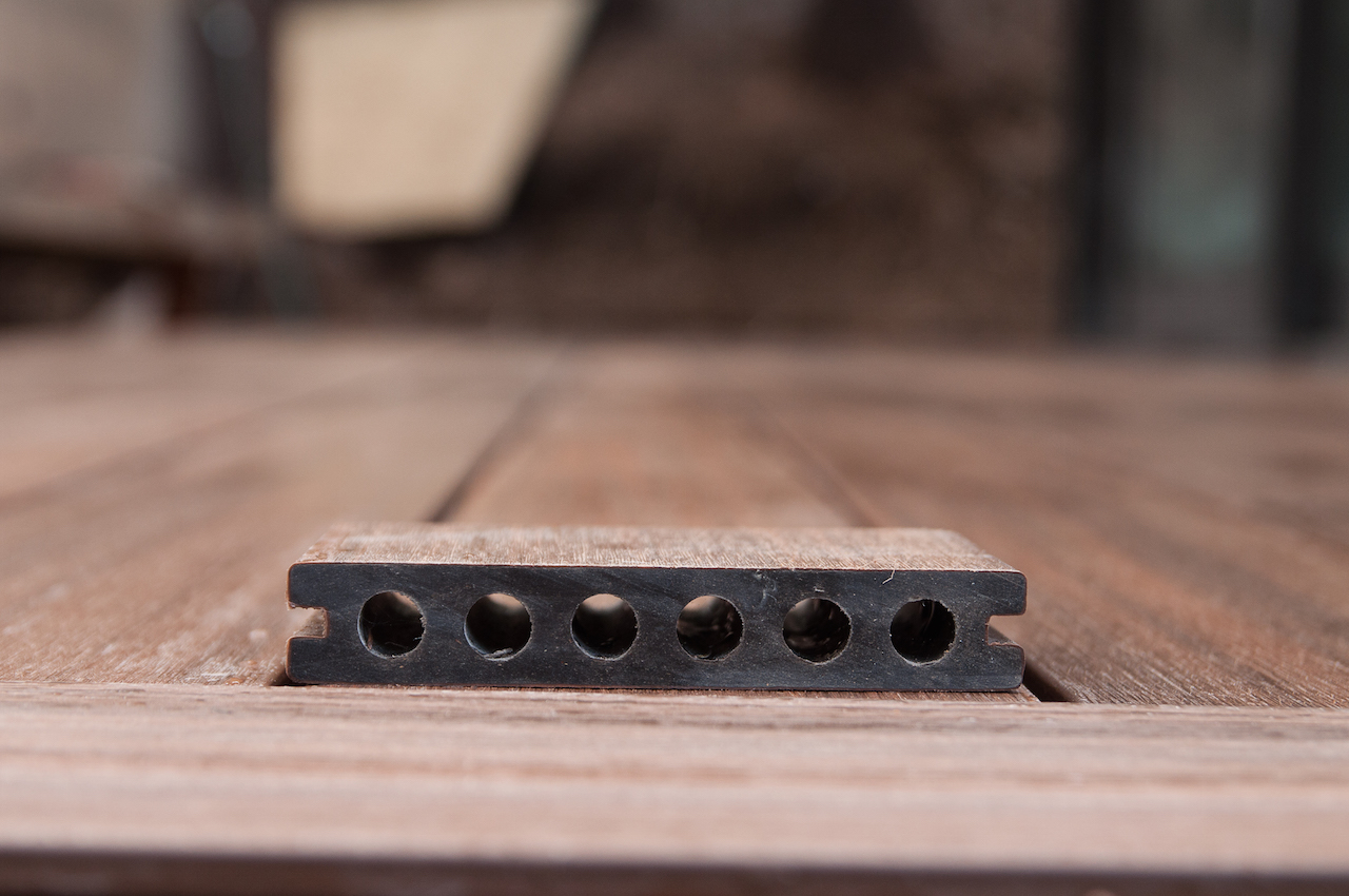 On the outside the ResortDeck composite boards look exactly like hardwood, but inside it’s completely different. We chose the Havana colour.